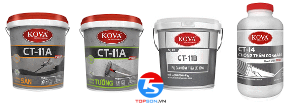 - Kova CT11A: Chất chống thấm xi măng, bê tông. Đây là sản phẩm chống thấm hàng đầu của Kova và là chất chống thấm được sử dụng nhiều nhất tại Việt Nam, nhất là tại Hà Nội, Bắc Ninh, Hưng Yên và các tỉnh phí Bắc. Thị trường miền Nam cũng đang sử dụng ngày càng nhiều bởi tính chất chống thấm cực tốt, sản phẩm giúp tuổi thọ tường cao và bền vững.