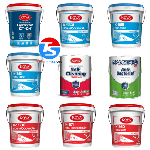 - K360: Loại sơn bóng cao cấp nhất của Kova với giá trên 4 triệu/thùng. Chất liệu cao cấp mang lại các tính năng tốt nhất của Sơn Kova, nhưng yêu cầu thi công chuyên nghiệp do có tính hong khô nhanh và điều kiện thời tiết khắc nghiệt.