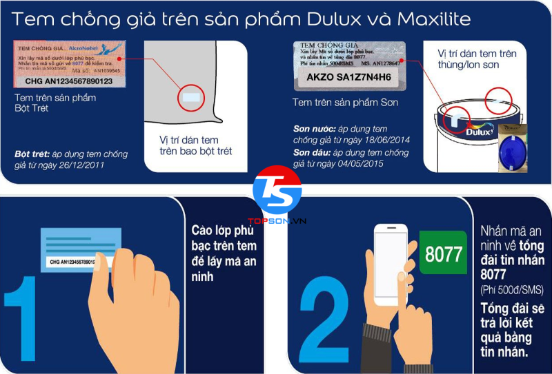 - Sản phẩm sơn nội ngoại thất Dulux bao gồm: Sơn chống thấm, Sơn lót, Sơn trắng (Tem dám hàng chính hãng ) và sơn pha máy vi tính trên hệ thống máy pha màu và chất màu độc quyền của hãng Sơn Dulux