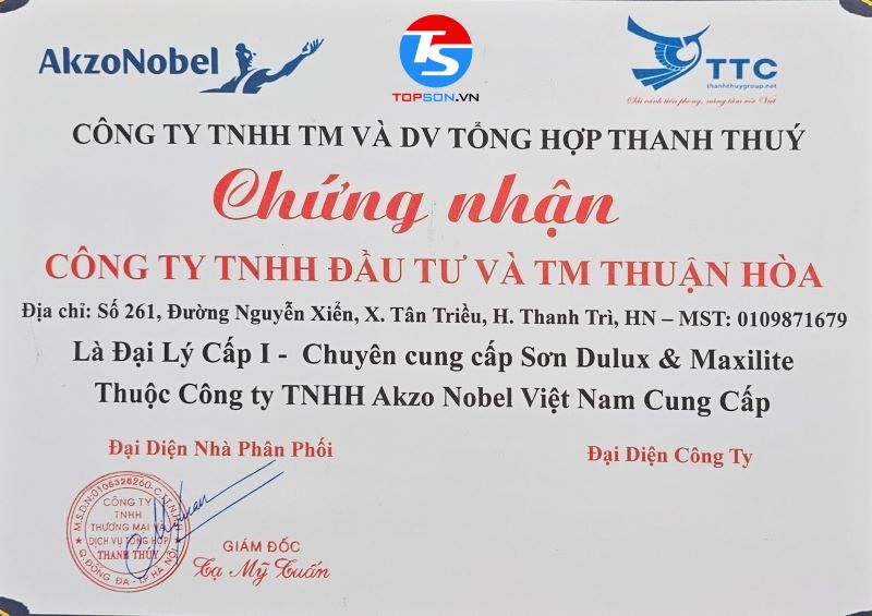 Đại lý sơn Dulux tại Ứng Hòa thuộc hệ thống nhà phân phối của Đại lý sơn Dulux Thuận Hòa (Topson Việt Nam): Đại lý Sơn hàng đầu Tại Việt Nam – một trong những đơn vị đi đầu trong lĩnh vực sơn trang trí trên toàn quốc. là địa chỉ đáng tin cậy cho việc mua sắm sơn chất lượng cao và đa dạng mẫu mã. Với sự chuyên nghiệp và kinh nghiệm lâu năm trong ngành, chúng tôi tự hào là đối tác đáng tin cậy của khách hàng tại khu vực này.