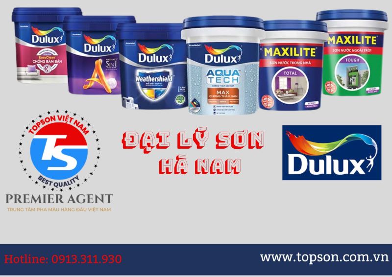 Đại lý sơn Dulux tại Hà Nam thuộc hệ thống nhà phân phối của Đại lý sơn Dulux Thuận Hòa (Topson Việt Nam): Đại lý Sơn hàng đầu Tại Việt Nam – một trong những đơn vị đi đầu trong lĩnh vực sơn trang trí trên toàn quốc. là địa chỉ đáng tin cậy cho việc mua sắm sơn chất lượng cao và đa dạng mẫu mã. Với sự chuyên nghiệp và kinh nghiệm lâu năm trong ngành, chúng tôi tự hào là đối tác đáng tin cậy của khách hàng tại khu vực này.