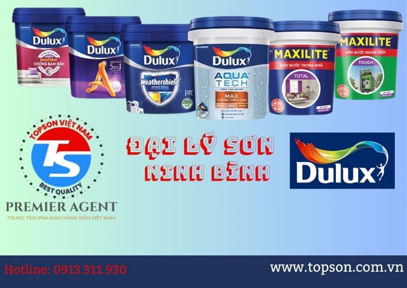 Đại lý sơn Dulux tại Ninh Bình thuộc hệ thống nhà phân phối của Đại lý sơn Dulux Thuận Hòa (Topson Việt Nam): Đại lý Sơn hàng đầu Tại Việt Nam – một trong những đơn vị đi đầu trong lĩnh vực sơn trang trí trên toàn quốc. là địa chỉ đáng tin cậy cho việc mua sắm sơn chất lượng cao và đa dạng mẫu mã. Với sự chuyên nghiệp và kinh nghiệm lâu năm trong ngành, chúng tôi tự hào là đối tác đáng tin cậy của khách hàng tại khu vực này.