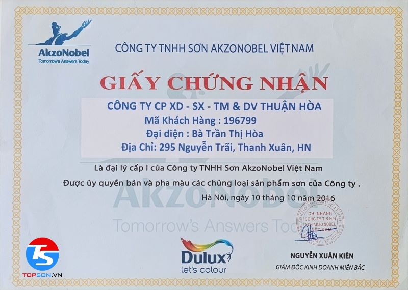 Topson Việt Nam nằm trong danh sách đại lý sơn Dulux uy tín nhất trên thị trường