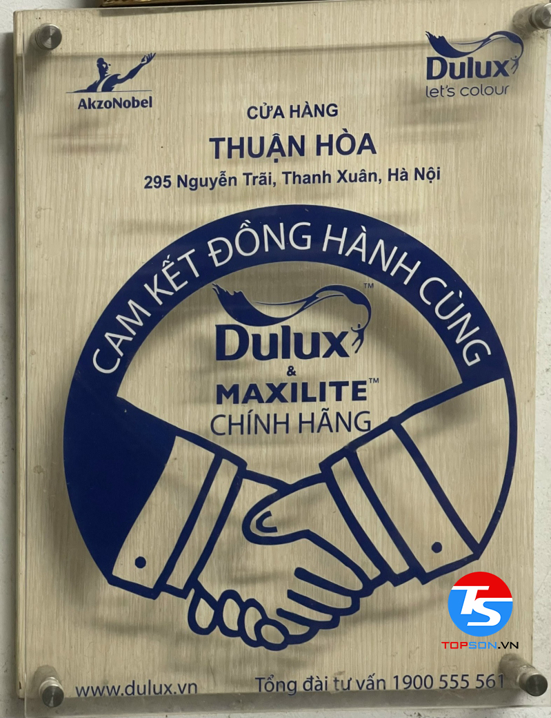 Tất cả những sản phẩm sơn Dulux từ ngoại thất, nội thất, sơn lót, sơn phủ gỗ, phủ kim loại đều được Topson Việt Nam phân phối chính hãng. Nếu ở xa bạn cũng có thể liên hệ với công ty qua số hotline 0913.311.930 để được tư vấn và hỗ trợ chuyển hàng về tận nhà.