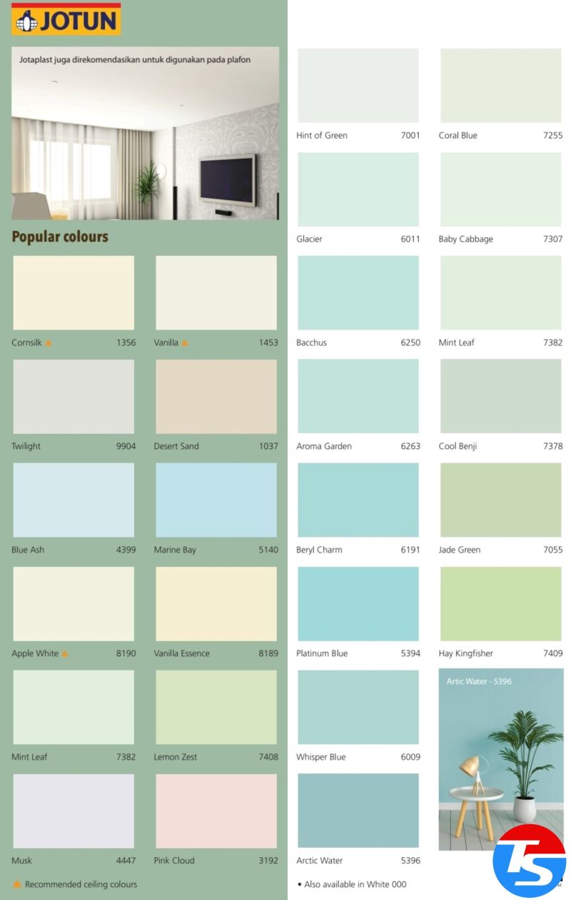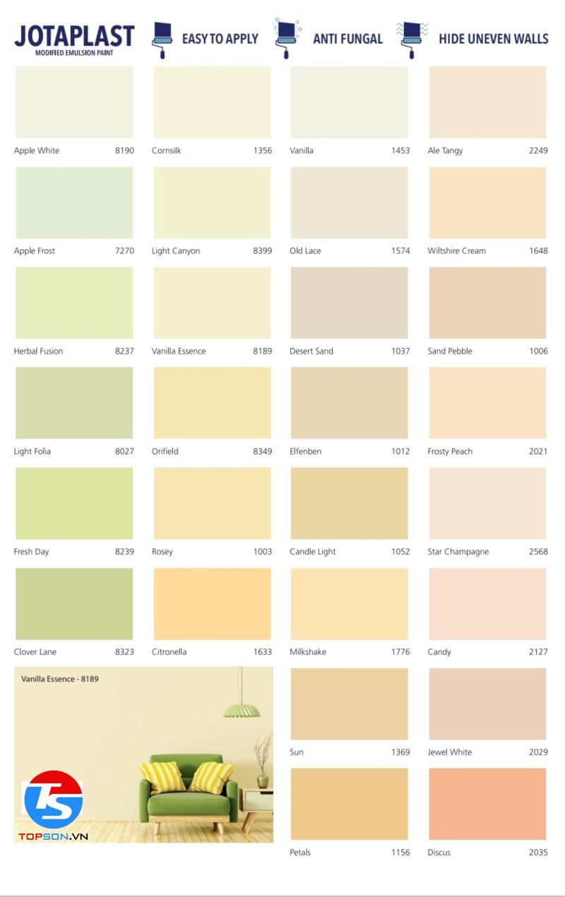 Bảng mã màu sơn Jotun Jotaplast dành cho nội thất mịn