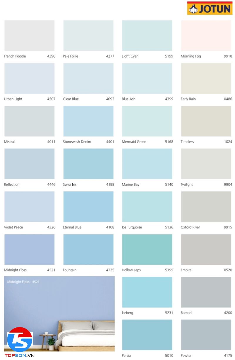 Hệ thống bảng màu của sơn Jotun bao gồm các mã màu giới đây