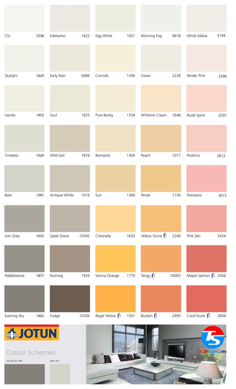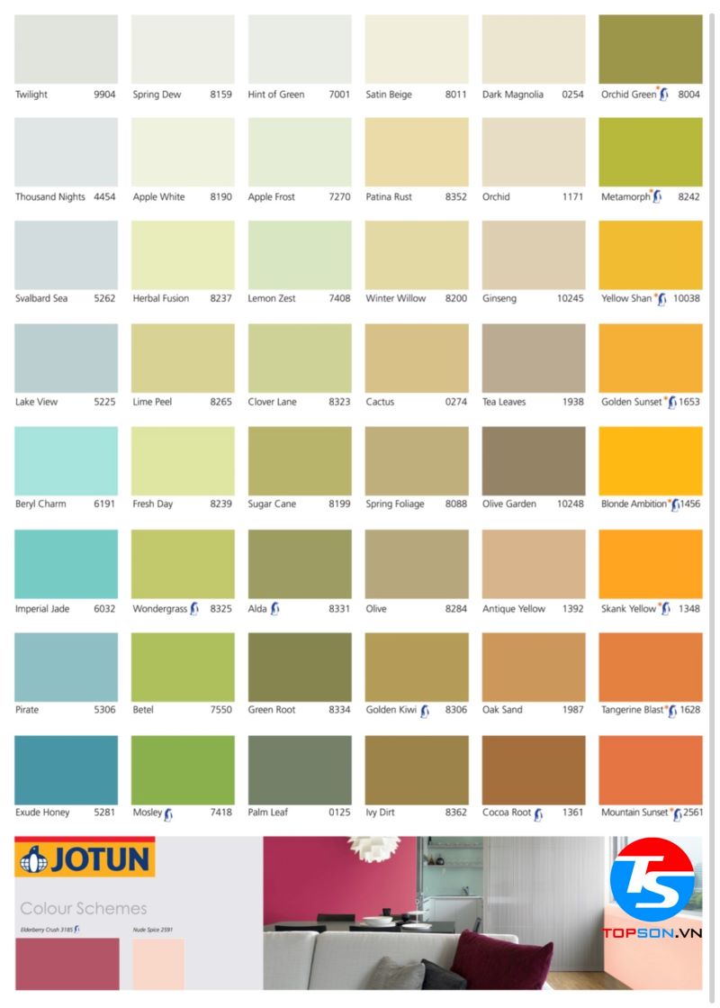 Bảng màu sơn của Jotun có rất nhiều màu nên nếu bạn quan tâm đến sơn Jotun thì hãy tham khảo bảng màu của nó mà chúng tôi luôn cập nhật tại TOPSON.vn nhé!