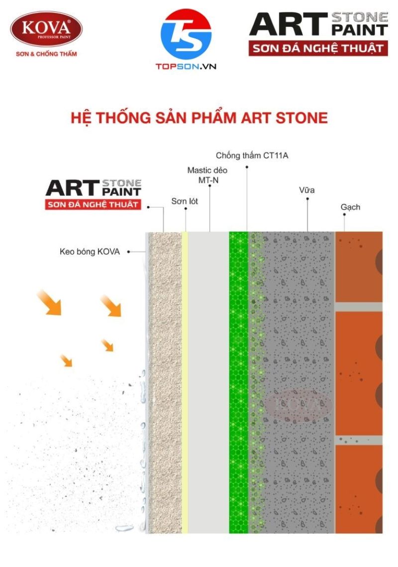 Sơn đá nghệ thuật Kova, các bước và sản phẩm sơn theo quy trình