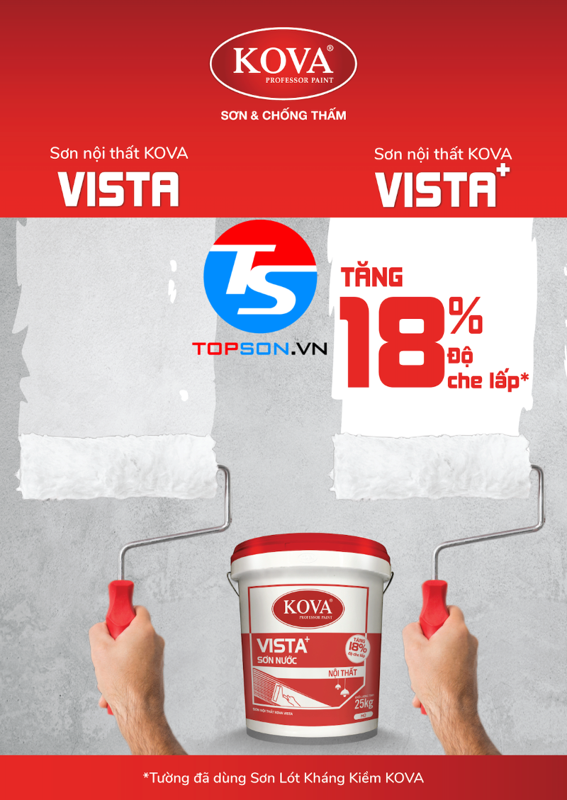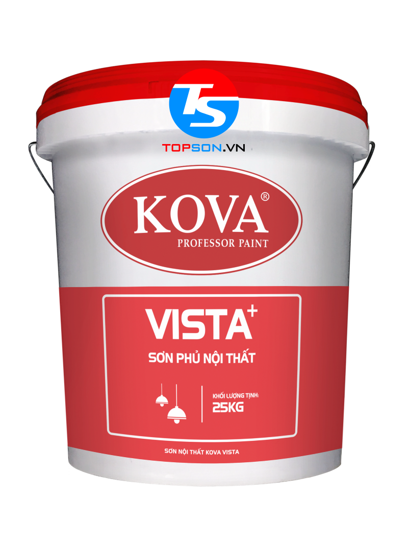 Sơn nội thất KOVA VISTA+ là loại sơn phủ nội thất hệ Styren Acrylic, đã được tối ưu hóa cho khí hậu nóng ẩm của Việt Nam. Sản phẩm này được sử dụng để trang trí các bề mặt nội thất như tường bê tông, vữa, xi măng sau khi đã sử dụng mastic dẻo và bột trét để làm phẳng, và được phủ sơn lót kháng kiềm nội thất. Sơn này phù hợp với nhiều loại bề mặt trong cả công trình xây dựng dân dụng và công nghiệp.