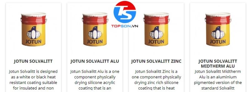 Sơn chịu nhiệt Jotun Solvalitt Alu là dòng sơn cao cấp, có thành phần khoáng lý gốc silicone acrylic. Với khả năng chịu nhiệt lên tới 600 độ C, sản phẩm này được đánh giá là lựa chọn tốt nhất cho việc sơn phủ trên bề mặt thép carbon, nhôm, thép tráng kẽm và thép chống rỉ.