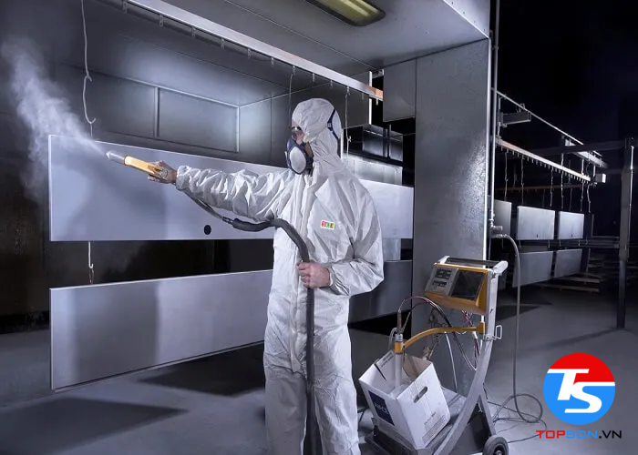 1. Dạng phun: Sử dụng máy phun sơn yếm khí hay máy phun sơn thông thường