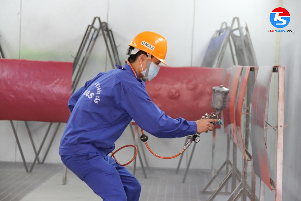 Bước 3: Sơn lớp sơn chống cháy với độ dày vừa đủ: Người thợ phải tiến hành sơn nhanh, đều tay để lớp sơn có độ dày hợp lý