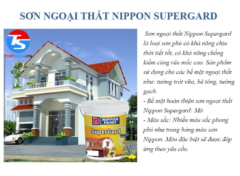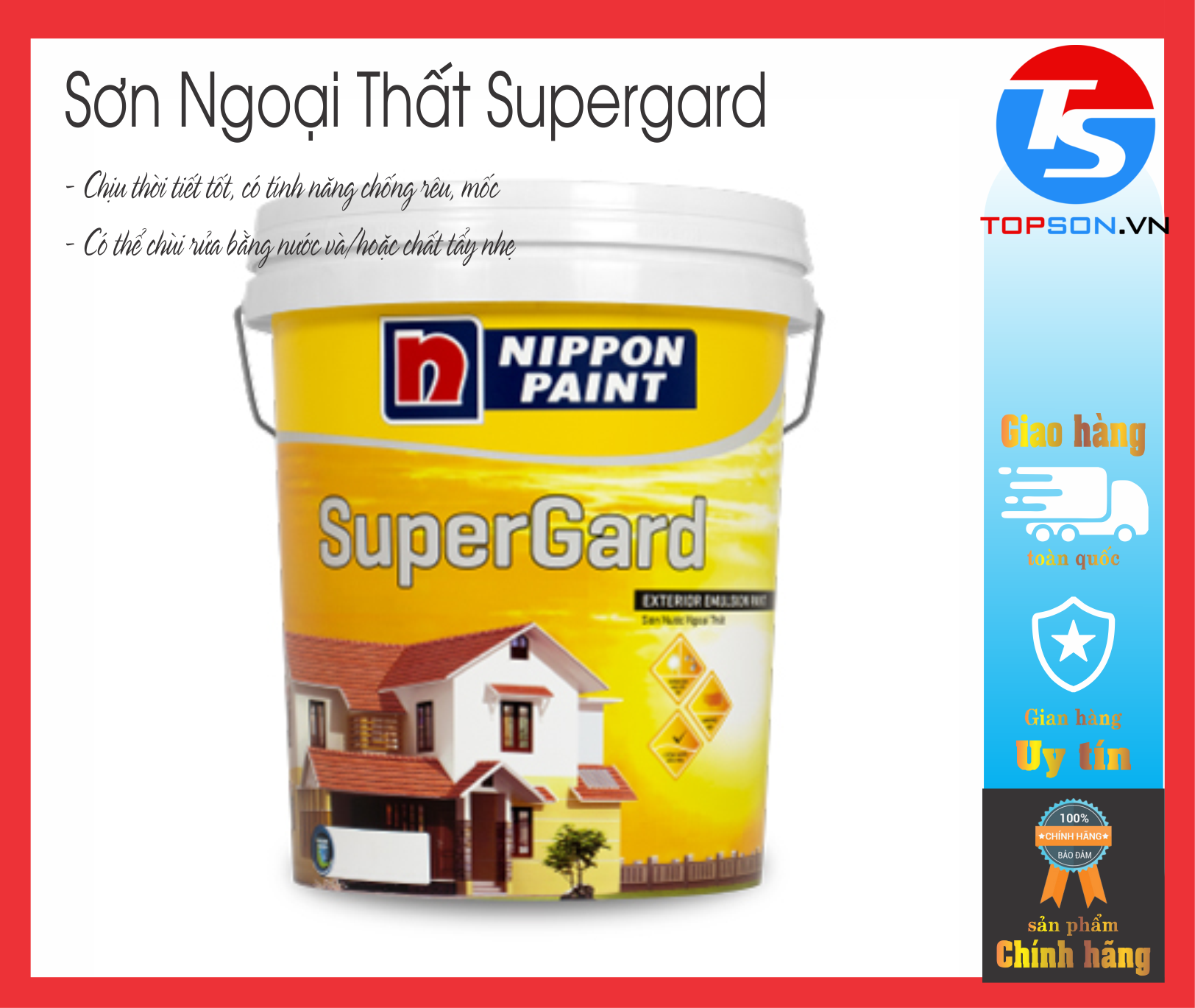 Sơn ngoại thất Nippon SUPERGARD là loại sơn nước thân thiện với môi trường, nhằm ngăn chặn các chất kiềm trong xi-măng cho các bề mặt tường ngoại thất. Với những đặc điểm sau:
