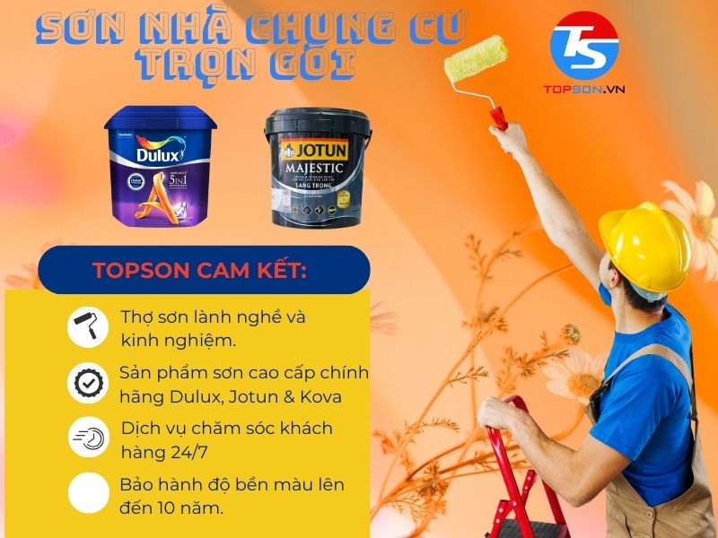 Nếu bạn muốn sơn nhà chung cư một cách nhanh chóng, đẹp mắt và tiết kiệm chi phí, Topson Việt Nam là lựa chọn hàng đầu của bạn. Chúng tôi cam kết mang đến cho bạn không gian sống hoàn hảo với mức giá phải chăng.