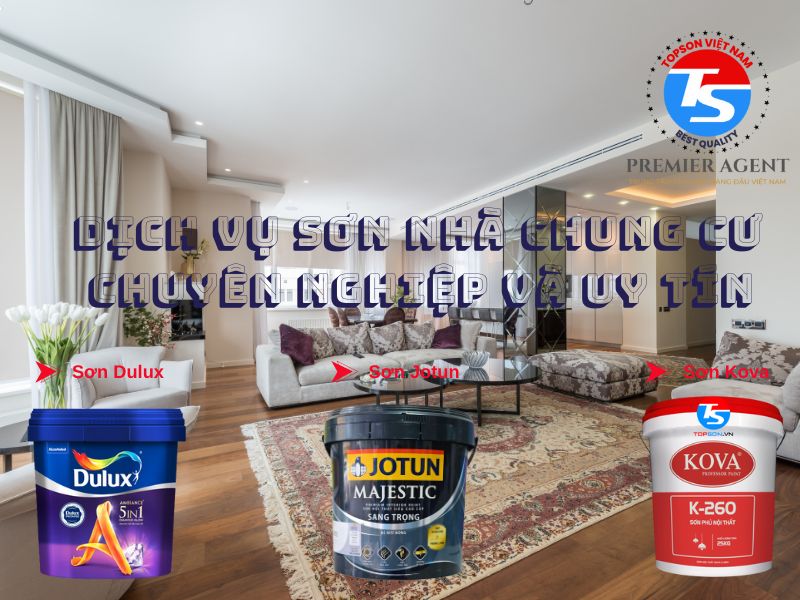 Hãy tham khảo các dòng sơn chất lượng như sơn Jotun, sơn Dulux, sơn Kova tại Topson để hoàn thiện không gian sống của bạn một cách hoàn hảo nhé! Đây là công ty sơn duy nhất cung cấp giải pháp toàn diện cho việc sơn trang trí cho các công trình và căn hộ chung cư.