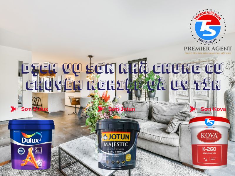 Hãy tham khảo các dòng sơn chất lượng như sơn Jotun, sơn Dulux, sơn Kova tại Topson để hoàn thiện không gian sống của bạn một cách hoàn hảo nhé! Đây là công ty sơn duy nhất cung cấp giải pháp toàn diện cho việc sơn trang trí cho các công trình và căn hộ chung cư.