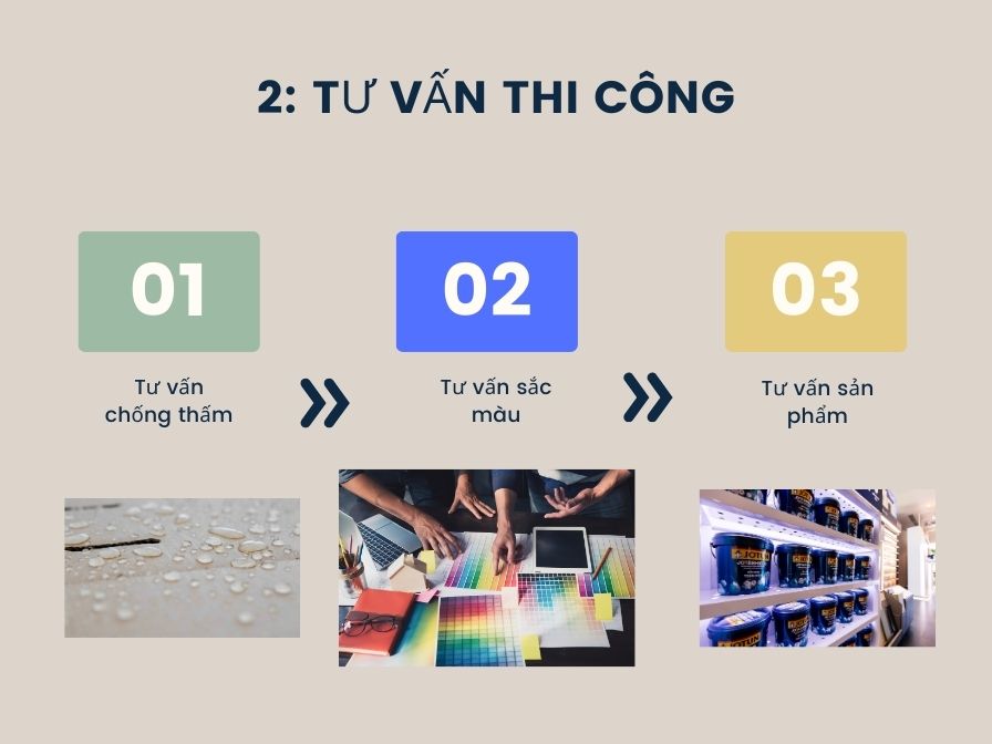 - Chúng tôi sẽ cụ thể hóa phương án thi công, lập dự toán và bảng báo giá sơn nhà gửi tới khách hàng phê duyệt.