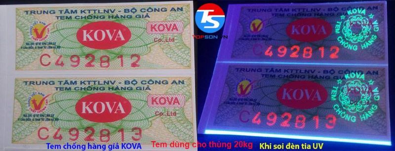 - Bên cạnh đó, người tiêu dùng cũng có thể sử dụng mã xác thực để kiểm tra tính chính hãng của sản phẩm. Chỉ cần cào lớp tráng bạc trên tem của sản phẩm và gửi tin nhắn theo cú pháp"KOVA (dấu cách) mã xác thực"tới số 8077. Tổng đài sẽ gửi lại thông tin xác minh ngay tức khắc.