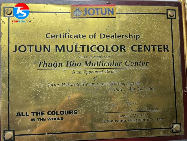 Topson Việt Nam chúng tôi luôn luôn đảm bảo rằng mọi sản phẩm sơn khi trao đến tay người tiêu dùng đều là hàng chính hãng 100%. Công ty của chúng tôi là showroom sơn Jotun cấp 1 được ủy quyền bởi chính nhà sản xuất sơn Jotun trong hơn nhiều năm liên đã và đang hoạt động trên thị trường đảm bảo cho quý khách hàng sự an tâm tuyệt đối.