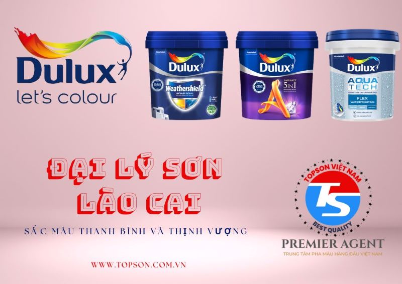 Đại lý sơn Dulux tại Lào Cai thuộc hệ thống nhà phân phối của Đại lý sơn Dulux Thuận Hòa (Topson Việt Nam): Đại lý Sơn hàng đầu Tại Việt Nam – một trong những đơn vị đi đầu trong lĩnh vực sơn trang trí trên toàn quốc. là địa chỉ đáng tin cậy cho việc mua sắm sơn chất lượng cao và đa dạng mẫu mã. Với sự chuyên nghiệp và kinh nghiệm lâu năm trong ngành, chúng tôi tự hào là đối tác đáng tin cậy của khách hàng tại khu vực này.