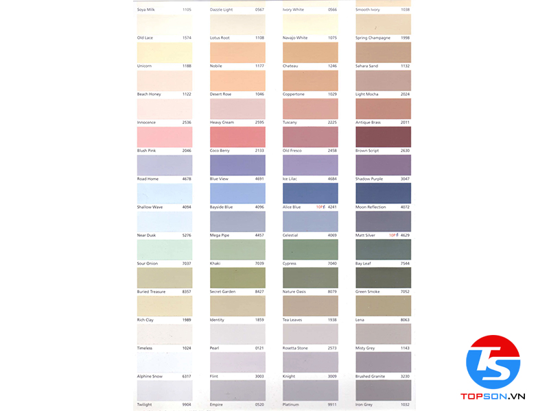 Bảng màu của sơn Gardex Bóng Mờ