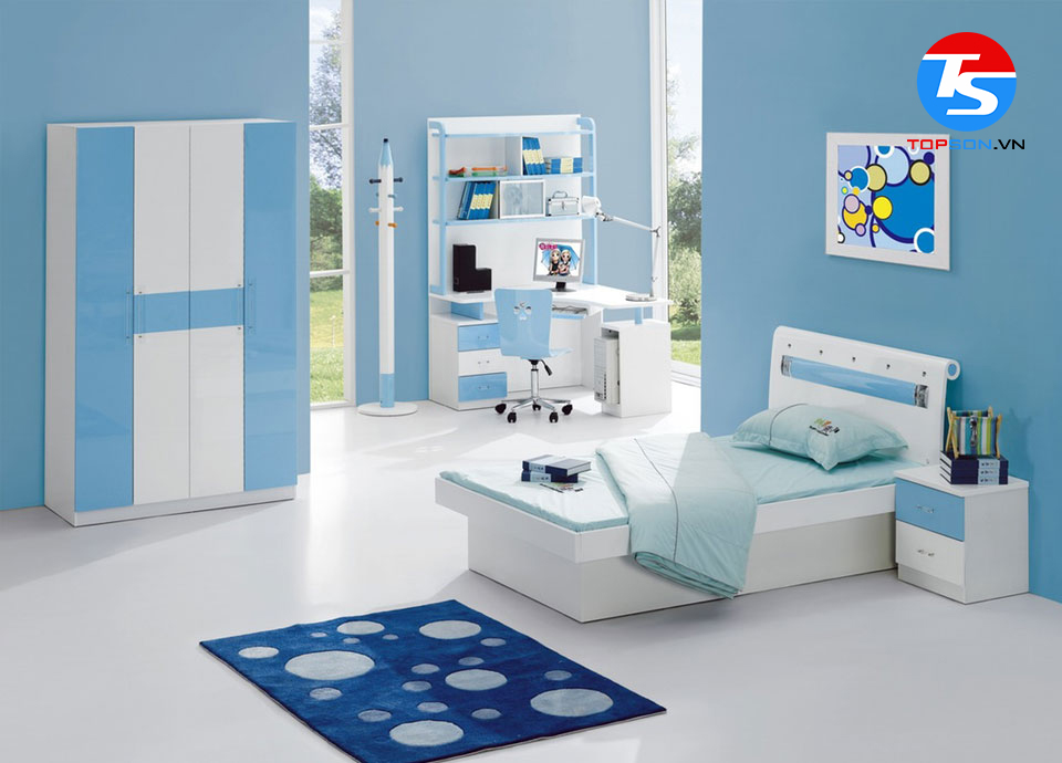 Những gam màu này còn tạo nên sự bình an khiến cho giấc ngủ của con người được sâu và tinh thần cũng trở nên sảng khoái mỗi ngày. Bên cạnh đó gia chủ nên kết hợp thêm các vật dụng trang trí trong phòng ngủ hoặc sử dụng chăn ga trải giường có tông màu ấm như vàng, cam, hồng, trắng để không gian phòng ngủ giảm bớt sự lạnh lẽo cô độc của tông màu chính.