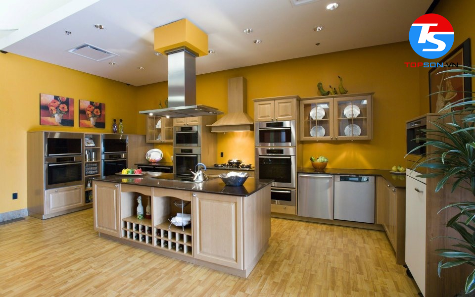 Sơn phòng bếp màu vàng đất hoặc nâu gỗ